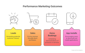 Performance marketing focuses on direct, trackable outcomes. Every campaign is designed to deliver a specific action, such as: