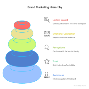 Brand marketing focuses on long-term perception and credibility. It builds: